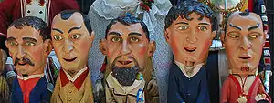 “Patata”, “Napoleón” (ambos de Benito Escaler, Barcelona 1912), “Caravinagre”, y “Berrugón” (creados en los talleres Porta-Coeli de Valencia en 1941). Aunque antiguamente no era así, en la actualidad es "Caravinagre" el más popular de todos y el que reclama una mayor atención. Como curiosidad, fue un cartel con la reproducción de su cabeza, el que anunció las fiestas de San Fermín de 1997.