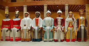 Los gigantes son 8 figuras creadas en 1860 por Tadeo Amorena, y que representan a cuatro parejas de reyes de cuatro etnias diferentes, la europea, la asiática, la africana y la americana.