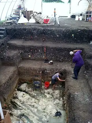Se realizaron excavaciones de prueba en 1991 y se iniciaron investigaciones geoarqueológicas continuas en 1998, que continuaron hasta 2002 y, de 2007 a 2015, bajo los auspicios del Laboratorio de Investigación Arqueológica de Texas en la Universidad de Texas; la Escuela de Investigación Arqueológica Gault. (GSAR) y el Proyecto de Investigación de Prehistoria en la Universidad Estatal de Texas.[3] En 2007, el sitio fue comprado y luego donado a The Archaeological Conservancy. Actualmente, la mayor parte del sitio es administrado y administrado por GSAR en representación de The Nature Conservancy y se ofrecen visitas y oportunidades educativas en forma regular.