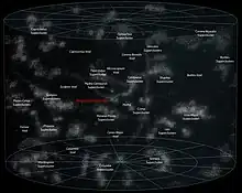 Mapa de los supercúmulos que se encuentran más próximos a nuestro supercúmulo local, el Supercúmulo de Virgo.