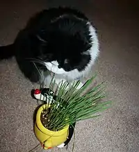 Las gatos son carnívoros obligados y pueden sobrevivir sin vegetación. Los felinos salvajes suelen cazar pequeños mamíferos a lo largo del día para mantenerse alimentados. Sin embargo, los gatos domésticos están acostumbrados a una vida relajada y por tanto comen cantidades más pequeñas pero de manera más regular[8]. Muchos gatos buscan y mascan pequeñas cantidades de hierba larga, pero sin valor nutricional, solo de forma mecánica.