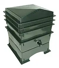 - Compostador urbano o vermicompostador: es un sistema desarrollado para reciclar, con la ayuda de lombrices rojas, restos vegetales de cocina en espacios reducidos. Ideal para el compostaje en ciudades. Se puede tener dentro de casa, en el balcón o en la terraza. Siempre a la sombra.