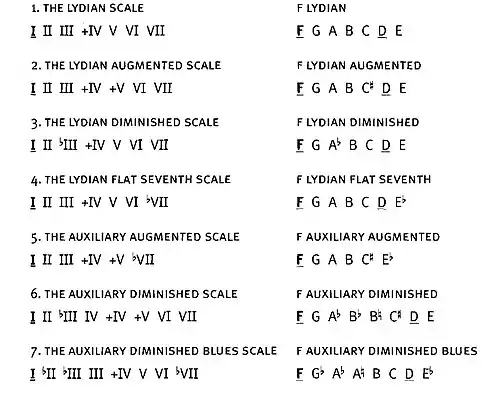 - Russell, George (1953) "Lydian Chromatic Concept of Tonal Organization". Ed. Brookline, Massachusetts, 2001. Concept Publishing Company ISBN 0-9703739-0-2
