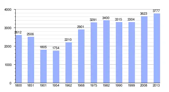 | Gráfica de evolución demográfica de Condé-sur-Vire entre 1800 y 2013 |