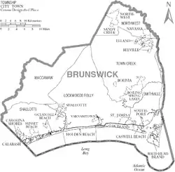 - Esta obra contiene una traducción derivada de «Brunswick County, North Carolina» de Wikipedia en inglés, publicada por sus editores bajo la Licencia de documentación libre de GNU y la Licencia Creative Commons Atribución-CompartirIgual 4.0 Internacional.