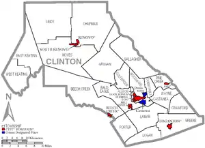 Allison | Bald Eagle | Beech Creek | Castanea | Chapman | Colebrook | Crawford | Dunnstable | East Keating | Gallagher | Greene | Grugan | Lamar | Leidy | Logan | Noyes | Pine Creek | Porter | Wayne | West Keating | Woodward
