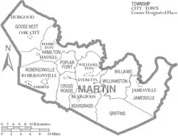 El condado se divide en diez municipios: Municipio de Beargrass, Municipio de Cross Roads, Municipio de Goose Nest, Municipio de Griffins, Municipio de Hamilton, Municipio de Jamesville, Municipio de Poplar Point, Municipio de Robersonville, Municipio de Williams y Municipio de Williamston.