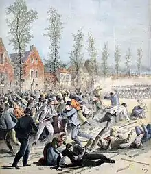 El 17 de abril de 1893, entre Mons y Jemappes, siete huelguistas fueron asesinados por la guardia cívica al final de la huelga general belga de 1893. La ley propuesta sobre el sufragio universal fue aprobada al día siguiente por el Parlamento belga. Esta huelga general fue una de las primeras huelgas generales en un país industrial.