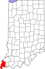 ![]() Ubicación del condado en Indiana. ![]() Ubicación de Indiana en EE. UU. | ||