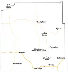 - Esta obra contiene una traducción derivada de «Shannon County, South Dakota» de Wikipedia en inglés, publicada por sus editores bajo la Licencia de documentación libre de GNU y la Licencia Creative Commons Atribución-CompartirIgual 4.0 Internacional.