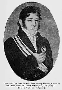 Don José Antonio Portuondo y Herrera, fue el segundo Conde de Santa Inés por Real Carta de Sucesión del año 1825[1] y se le concedió la Gran Cruz de Isabel la Católica. Nació en la ciudad de Santiago de Cuba en 1800 y fallece en 1882, casó con su María del Carmen Moya y Bayu, hija de Don Juan Crisostomo de Moya y Morejón, Brigadier de los Reales Ejércitos de Rey de la plaza de Santiago de Cuba, Caballero de la orden de San Hermenegildo[2]
