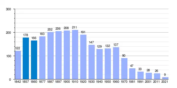 | Gráfica de evolución demográfica de Condemios de Abajo[2] entre 1842 y 2021 |