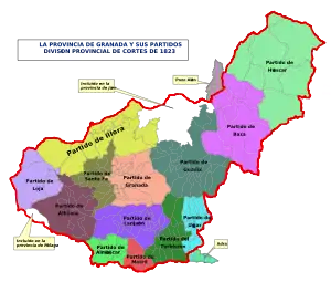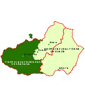 - Provincias de primer orden: aquellas que incluían partidos o gobernaciones subalternas. Una de ellas fue Granada, que incorporaba al partido de Guadix.