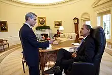 - Talev, Margaret (7 de noviembre de 2008). «Obama names chief of staff, plans news conference as transition pace picks up». McClatchy Newspapers.