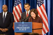 Wikinoticias tiene noticias relacionadas con Confirmación del Gabinete de Barack Obama.
