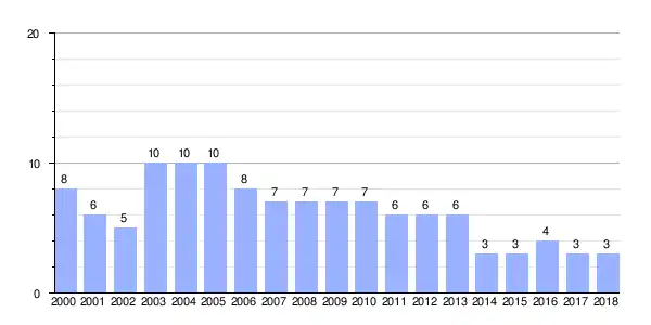 | Gráfica de evolución demográfica de Congostro entre 2000 y 2018 |