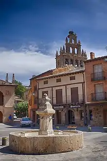 En la Plaza Mayor se sitúan el poder civil -ayuntamiento- y el religioso representado en la iglesia de Santa María de estilo neoclásico, que ha recibido elementos procedentes de las parroquias extinguidas. Su planta es de cruz latina y el campanario se remata con una espadaña. En la portada dos columnas estriadas sustentan la hornacina con la imagen de la Virgen. En la plaza mayor, frente a la Casa del Ayuntamiento, se localiza la Iglesia de San Miguel. De traza románica, consta de una nave, atrio, ábside cilíndrico y espadaña. En el siglo XV se construye el pórtico en el que se alza el escudo de armas de la familia Contreras. En 1675 el Cabildo acuerda hacer un mirador sobre los soportales para poder contemplar los festejos taurinos que se celebraban en la Plaza Mayor.</ref name=jcyl/>
