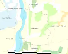 - Situación de Connelles en un mapa de Francia y de comunas limítrofes (en francés)