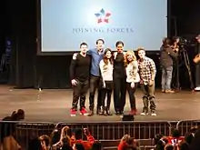 ![]() La primera dama Michelle Obama mirando una interpretación entre bastidores con algunos miembros del reparto de la serie. | |||||