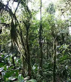 Selva nubosa en Ecuador; un ejemplo del hábitat donde vive esta especie.