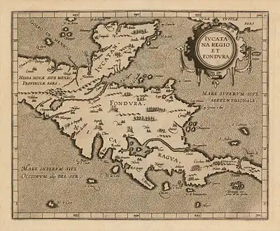 La flota colombina compuesta por cuatro naves y 144 personas había zarpado de la Gran Canaria el 25 de mayo de 1502, y el 15 de junio llegó a la isla de Martinica.[22] Pasó luego Colón a La Española, donde no se le permitió desembarcar, y allí pronosticó una tormenta que a fin de junio hundió 28 navíos de una flota que había zarpado hacia España.[22] En los últimos días de junio, tras recalar en Anegada (Cayo Largo del Sur) al este de la Isla de Pinos (en la actual Cuba), se lanzó hacia el suroeste en pos de tierras nunca antes vistas por los europeos.[22]