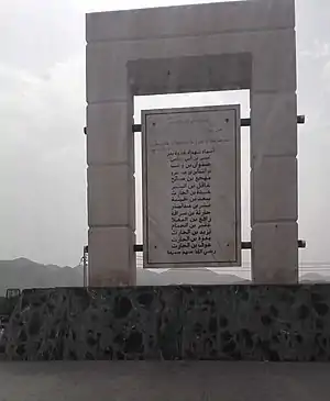 ![]() Los nombres de los 14 mártires musulmanes de la batalla de Badr en el Monumento a los Mártires de la ciudad homónima cerca del campo de batalla en Arabia Saudita. | ||||