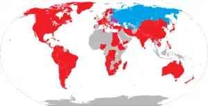 Miembros del CMP en rojo; países pertenecientes al International Federation for Peace and Conciliation (IFPC) en azul; países parte del CMP y del IFPC en violeta.