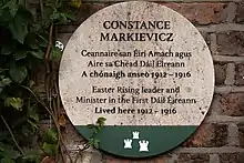 Placa conmemorativa de Constance Markievicz en el Ayuntamiento de Dublín, descubierta el 15 de julio de 2019.