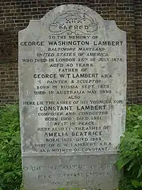 Lápida de tres generaciones de Lambert: George, Constant y Kit.
