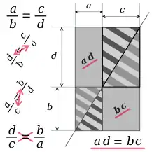 - verificar la igualdad de los productos cruzados: a·d = b·c. (tercera tabla: las igualdades anteriores equivalen a a·d = b·c, cuando no hay valores nulos, que por cierto no tienen un gran interés en este contexto). ya que no se puede comprobar el número