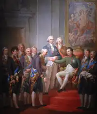 La concesión de la constitución por Napoleón fue plasmada en pintura por Marcello Bacciarelli, pero la escena que se muestra en la pintura probablemente sea ficticia.[1]