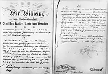 - El Kaiser (`emperador'), título que correspondía en exclusiva al rey de Prusia ―en ese momento, Guillermo I Hohenzollern―, poseía amplios poderes como la declaración de guerra y de paz y el control del ejército.[16][1]