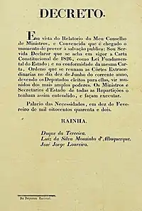 • Desde abril de 1826 (se otorga la carta) hasta mayo de 1828 (Miguel I es aclamado rey absolutista).