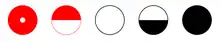 Consumer Reports utiliza una forma modificada de gráficos de Harvey Balls para la comparación cualitativa. Los ideogramas redondos están dispuestos de mejor a peor. El círculo rojo abierto a la izquierda en el diagrama indica la calificación más alta, la mitad símbolo rojo y blanco es la segunda más alta calificación, mientras que el círculo negro abierto es neutral. La calificación más baja es el llenado el círculo negro, mientras que la calificación segunda más baja es el círculo negro a la mitad.[46]