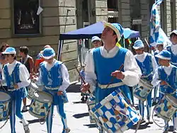 Onda tiene el título de contrada capitana (contrada capitana) porque antiguamente sus soldados hacían guardia en el Palazzo Pubblico.