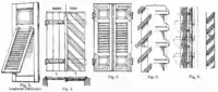 Las contraventanas interiores generalmente se dividen en unidades estrechas con bisagras en forma de acordeón, de modo que dos o más unidades cubran cada lado de la abertura de una ventana cuando están cerradas. Las contraventanas de lamas operables tienen lamas (o lamas en el uso británico), o listones, controlados por una barra o varilla de inclinación para ajustar la posición de las lamas y mantenerlas en una posición uniforme, para controlar la luz, la visibilidad y el flujo de aire. [1]