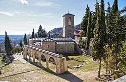 El convento está realizado en mampostería de granito. Su elemento arquitectónico más importante es la iglesia, que destaca por la singularidad de su estructura, si se tienen en cuenta las pautas estilísticas imperantes en el románico de los siglos XI y XII. A pesar de sus reducidas dimensiones, presenta una estructura de cierta complejidad, con cinco ábsides, tres naves y crucero.