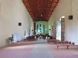 La techumbre que originalmente estaba hecha de vigas de madera, fue reemplazada en 1988 por vigas de fierro que sostienen tejas de barro.