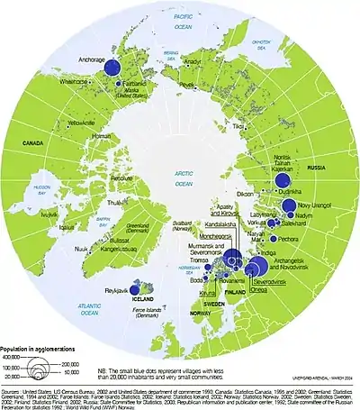 En 2007, Rusia plantó una bandera en el fondo marino del Océano Ártico debajo del Polo Norte mientras realizaba una investigación para fundamentar su reclamación de una plataforma continental extendida. El establecimiento de la bandera se percibió erróneamente como reclamación de tierras, una reclamación que Canadá y otras naciones árticas reprendieron a pesar de que el gobierno ruso declaró claramente que no se hizo tal reclamación. En 2009, un documento de política del gobierno ruso citó informes occidentales de un potencial conflicto militar sobre los recursos del Ártico. A pesar de haber perdido el 18 por ciento de su población entre 1989 y 2002, el Ártico ruso comprende el 25% de la masa continental de Rusia y todavía contiene el 80 por ciento de los cuatro millones de personas que habitan la región ártica del planeta.[19] La política ártica actual de Rusia está contenida en el documento "Conceptos básicos de la política estatal de la Federación de Rusia para el Ártico hasta 2020 y más allá", firmado el 18 de septiembre de 2008 por el presidente ruso Medvedev.[31] Este documento de política aborda varios problemas relacionados con la protección y el desarrollo de la tierra y las aguas costeras del sector ártico de Rusia.[Nota 2]