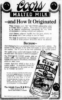 La compañía Coors Brewing logró sobrevivir a la famosa ley seca relativamente intacta. Años antes de la Ley Volstead, Adolph Coors y sus hijos Adolph Jr., Grover y Herman crearon la empresa Adolph Coors Brewing and Manufacturing Company, que incluía marcas como Herold Porcelain y otras empresas. La cervecería en sí se convirtió en una fábrica de leche de malta, que vendía a la compañía de caramelos Mars para la producción de dulces. Manna, el reemplazo de la cerveza sin alcohol de la empresa era una cerveza similar a las bebidas no alcohólicas actuales. Por suerte, Coors y sus hijos diversificaron fuertemente sus inversiones, que incluían compañías de porcelana o de cemento, así como propiedades inmobiliarias. Todo para mantener Coors Brewing Company a flote. Hacia 1933, después del final de la prohibición, la cervecería Coors era una de las más importantes cervecerías que habían sobrevivido.[5]