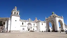 La Basílica de Nuestra Señora de Copacabana posee una imponente belleza y una gran colección de objetos religiosos. El templo fue construido en estilo renacentista entre los años 1601 y 1619, por el arquitecto Francisco Jiménez de Siguenza, y concluido junto con el atrio y posas que lo rodean el año 1640. A decir de los historiadores, D. José de Mesa y Teresa Gisbert, lo más extraordinario del conjunto de Copacabana es que conserva la Capilla Abierta o Capilla de Indios, que se puede ver adosada a la nave del templo.