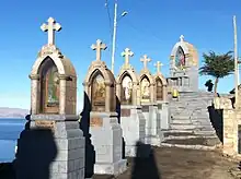 En 1582, el nieto del gobernante inca Manco Cápac, impresionado al ver las estatuas de la Santísima Virgen que vio en algunas de las iglesias de La Paz, trató de hacer una él mismo, y después de muchos fracasos, logró producir una de excelente calidad, la cual fue colocada en Copacabana como estatua de la protectora tutelar de la comunidad.[10] A la Virgen de Copacabana, se le han atribuido muchos milagros, y su fama se ha extendido mucho más allá de los límites de su entorno a los cinco continentes. Se guarda en una capilla especial, donde los aimaras locales, bolivianos y de todo el mundo son incansables en sus devociones. Hasta el día de doy, la Virgen de Copacabana es la figura sagrada más importante de Bolivia.