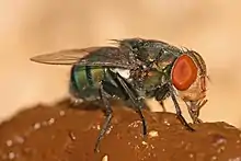La coprofagia es un régimen alimentario casi exclusivo de los insectos, en especial de larvas de dípteros y de coleópteros escarabeoideos. Existen muchas especies que desarrollan estos hábitos, tal vez las más famosas son los escarabajos peloteros, sagrados en el antiguo Egipto, y las moscas.
