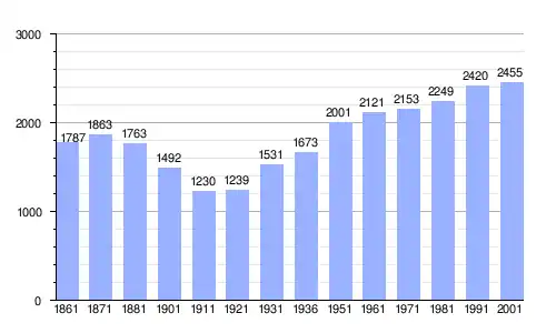 | Gráfica de evolución demográfica de Corbara entre 1861 y 2001 |