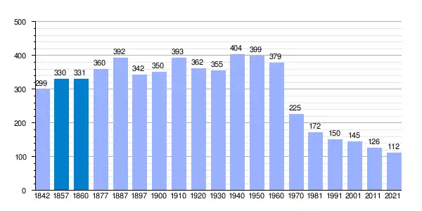 | Gráfica de evolución demográfica de Cordovilla[6] entre 1842 y 2021 |
