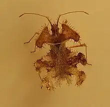 Coreidae, con las tibias de sus patas traseras en forma de hoja, adaptadas para el aposematismo y el cortejo