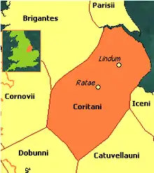 Los coritani (Corieltavi o Corieltauvi) eran un pueblo celta[1] del nordeste de Inglaterra, con base en la zona de Leicester. Limitaban al noroeste con los brigantes, al oeste con los cornovii y dobunni y al sur con los catuvellauni y los iceni.