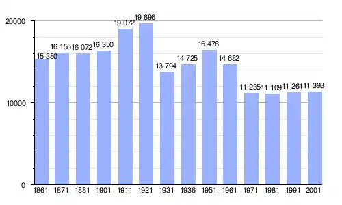 | Gráfica de evolución demográfica de Corleone entre 1861 y 2001 |