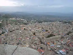 La ciudad se encuentra en el medio de tres rocas: la Rocca dei Maschi, el Castello Soprano (roca con los restos de la antigua torre de estación de guardia sarracena) y el Castello Sottano (roca sobre la que se encuentra todavía un castillo convertido en prisión hasta el final de la segunda guerra mundial y ahora ermita franciscana).