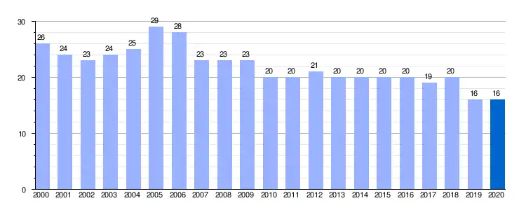 | Gráfica de evolución demográfica de Cornón de la Peña entre 2000 y 2020 |